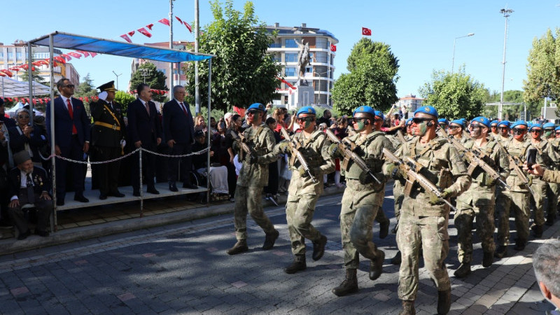 Tören, halk oyunları gösterileri, mini konser ve resmi geçit ile sona erdi.